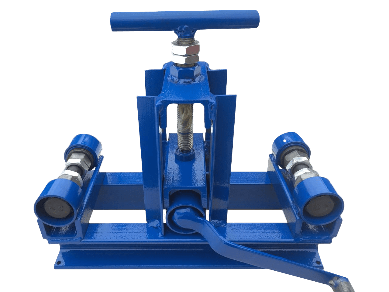 Если изделие, которое нужно изогнуть, в диаметре больше 20 мм, предыдущую конструкцию придется доработать с помощью двух стальных прутов круглого сечения, высотой 40-50 см, которые будут выполнять роль осей для роликов. На этом этапе изготовления станка для гибки профильного металла понадобится приварить стальные пруты и вертикальные стойки для устойчивости.