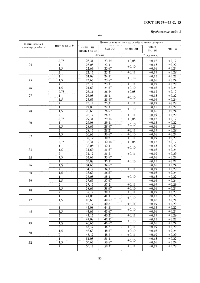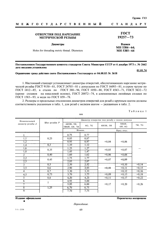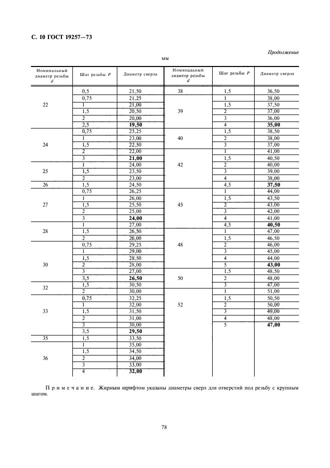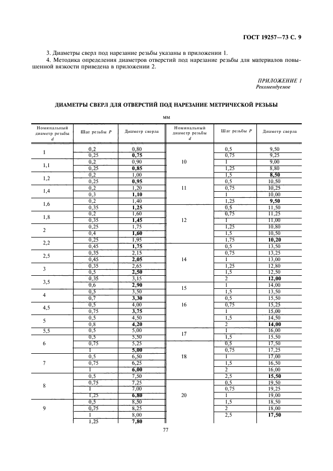 Таблица 1. Соответствие диаметров резьбы и подготовительного отверстия