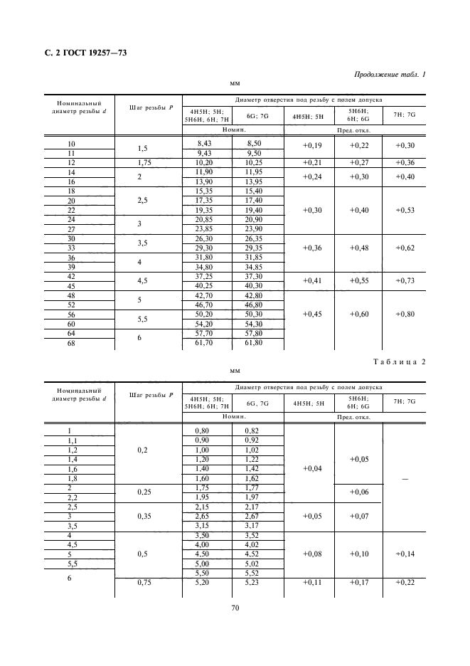 здесь: Дм — диаметр метчика.